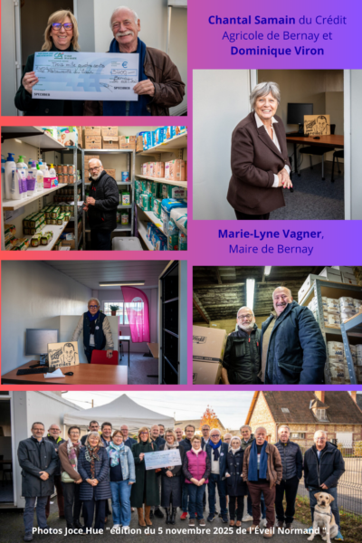 Les Restos du Cœur de Bernay ont reçu un préfabriqué pour chantier afin de recevoir les personnes accueillies. Il a été financé payé par les agences du Crédit agricole situées autour de Bernay.
